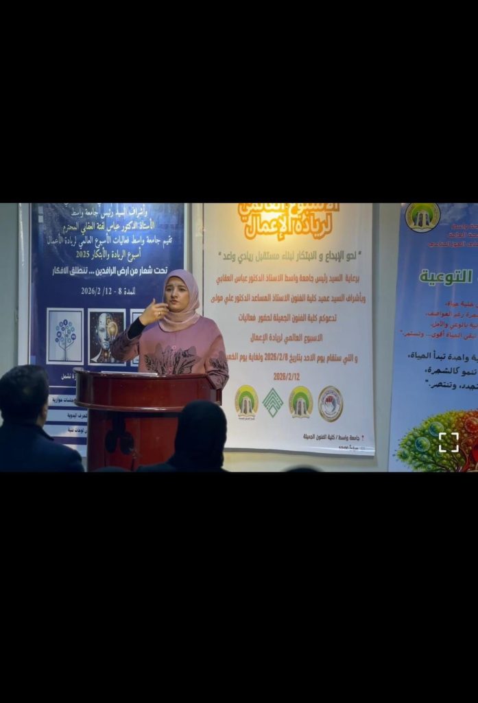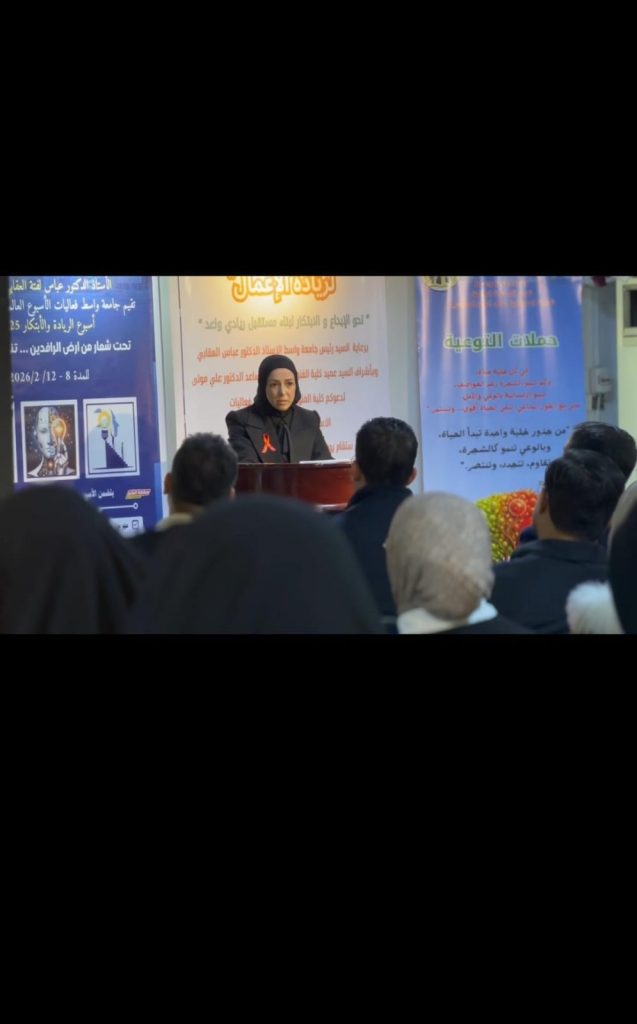 (مرض العوز المناعي البشري والإيدز: الوعي والوقاية – HIV/AIDS)، وذلك ضمن نشاطات أسبوع ريادة الأعمال، والتي احتضنتها كلية الفنون الجميلة في جامعة واسط.