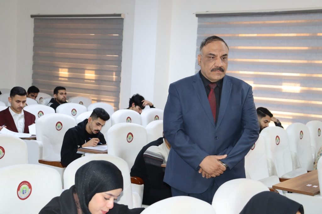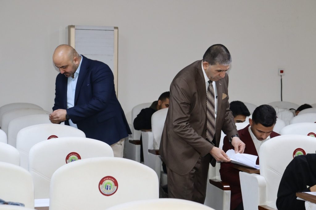 The monitoring included a field tour inside the examination halls in the presence of the Dean of the Faculty of Medicine, Assistant Professor Dr. Nasir Kazim Al-Maliki, to observe the mechanism of conducting the first course examinations and compliance with ministerial instructions. Professor Dr. Hussein Rahim Aziz, Dr. Ali Fadel Rashid, and Professor Dr. Riad Jabbar Mansour, Head of the Central Promotions Department at Wasit University emphasised the great efforts made by the teaching and administrative staff to ensure the success of the examination process and guarantee transparency and organisation.