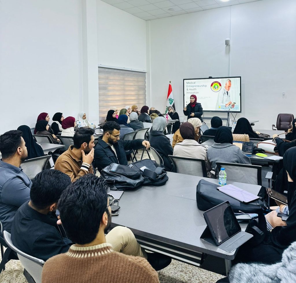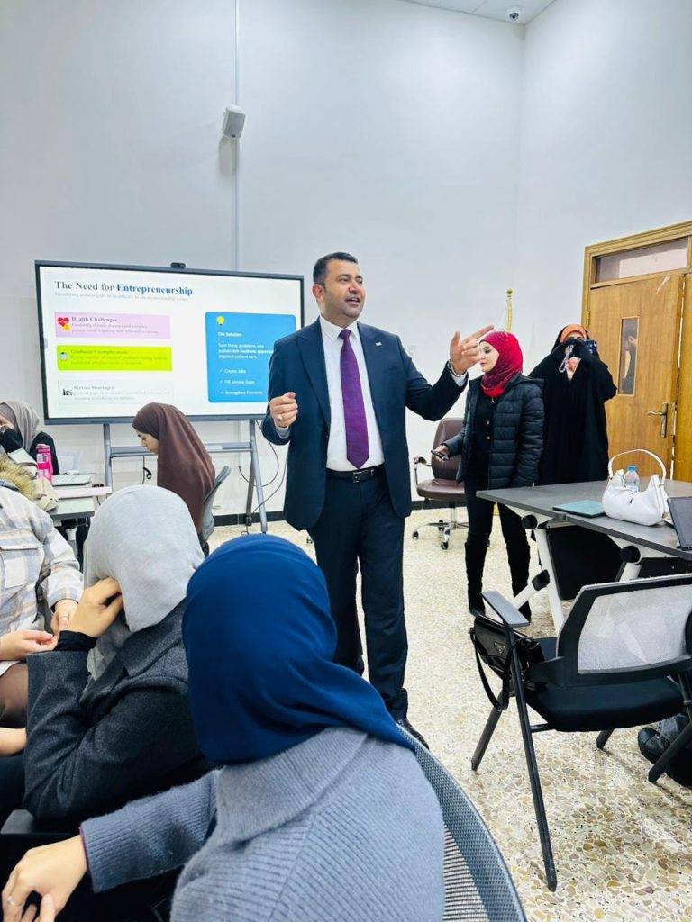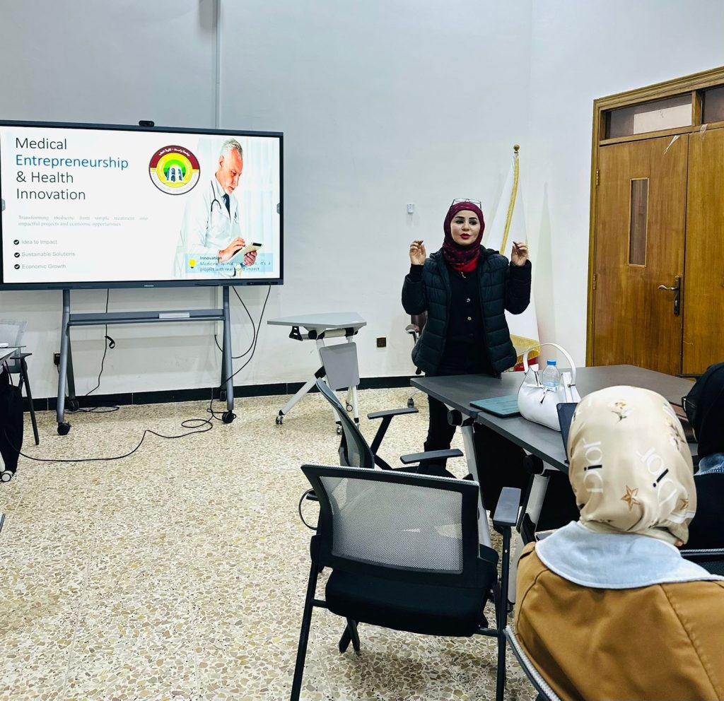 The Faculty of Medicine organised a scientific lecture entitled ‘Medical Entrepreneurship and Innovation in the Health Sector,’ presented by Dr. Tayf Karim Al-Qaisi, Head of the Sustainable Development Unit. The lecture addressed the recent shift in medical practice from its traditional therapeutic framework to innovative entrepreneurial projects with sustainable health and economic impacts. The lecture was attended by the Administrative Assistant of the Faculty of Medicine, Assistant Professor Dr. Salim Rahif Al-Aidi.